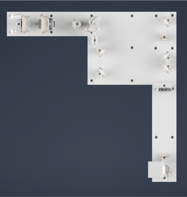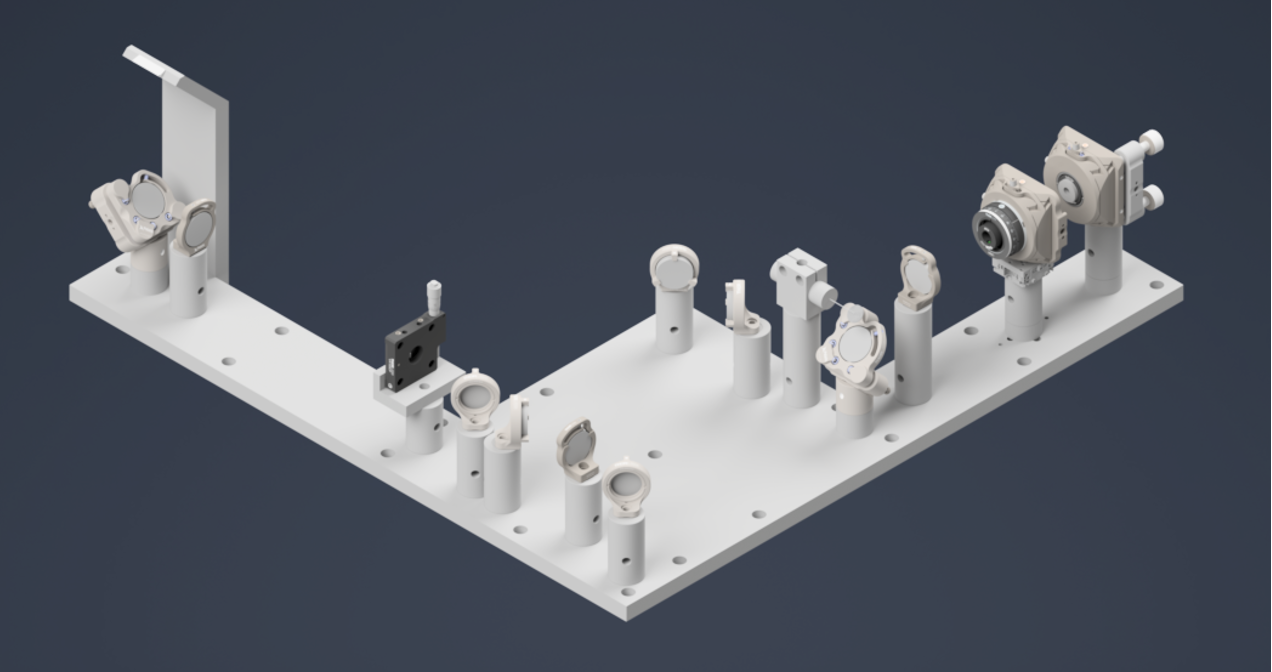 Figure 14: CAD rendering of the illumination baseplate showing folded beam path and component layout