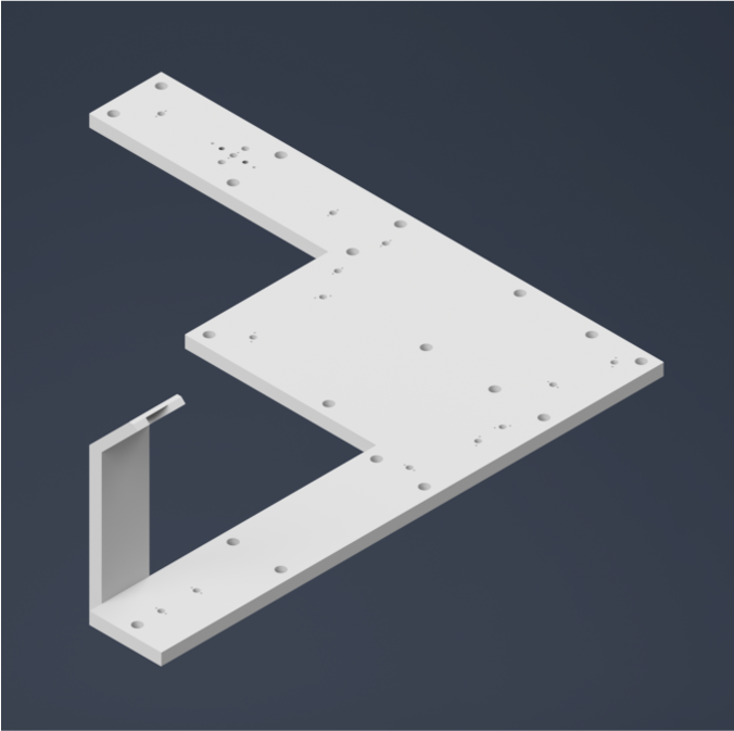 Figure 11: CAD rendering of the detection baseplate showing component placement and folded relay geometry