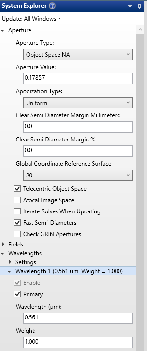 Figure 1: A screenshot of Aperture settings in System Explorer in Zemax